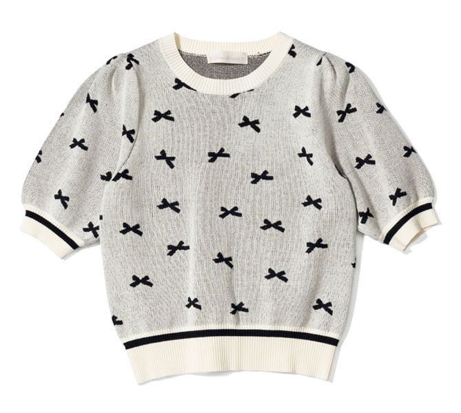 ニットに織り込まれたリボンプリントでリッチ&フェミニンに