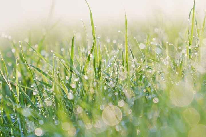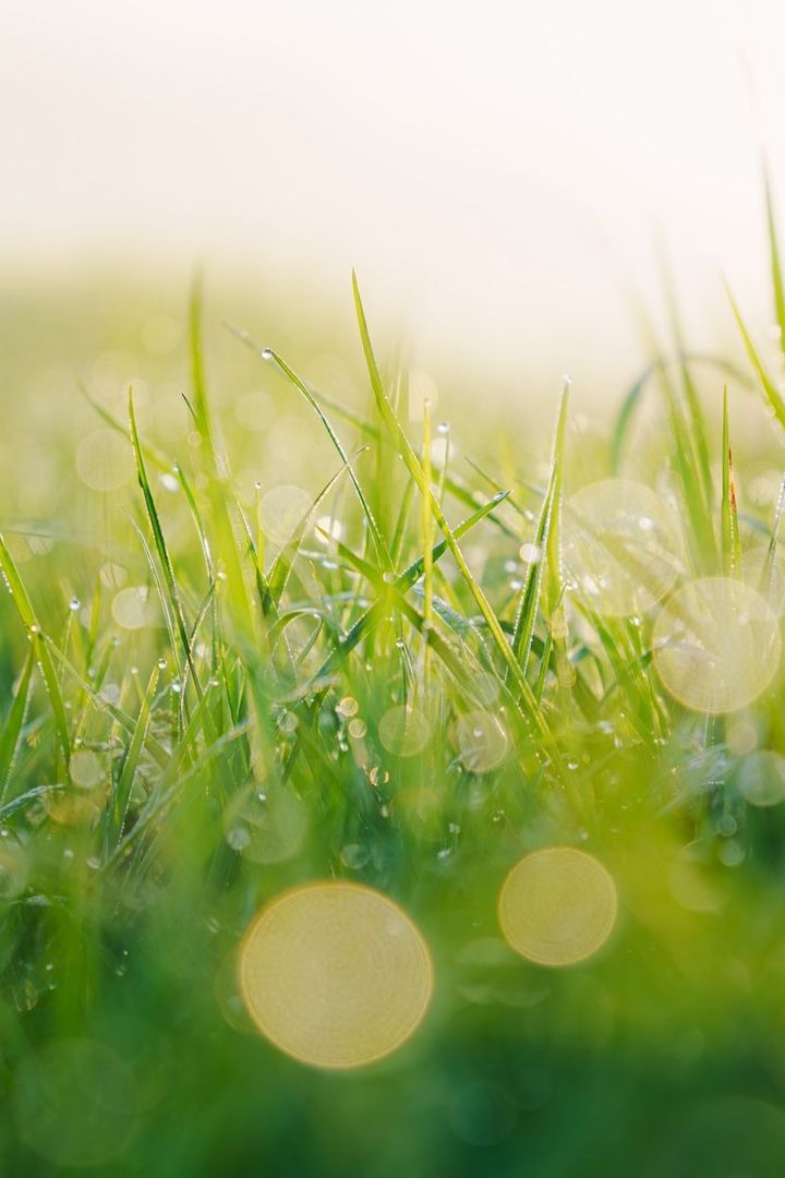 ほら、朝露が楽しく愉快に、雑草のまわりを踊っているように見えませんか?