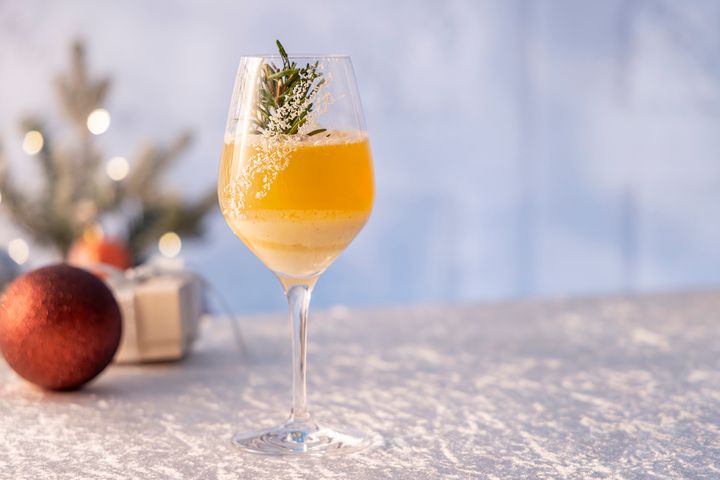 もみの木ブリーズクリスマスツリーに見立てたローズマリーに雪が積もっていく景色をイメージしたモクテル。洋梨のピューレとノンアルコールシャンパンの香り豊かなドリンクです。