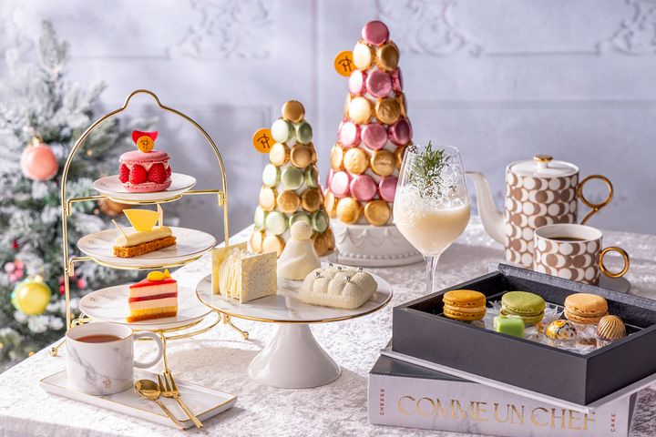 「プレミアムプラン」には、スペシャルドリンクの「もみの木ブリーズ」や、スイーツBOX(マカロン3種&チョコレートボンボン3種)もついてきます。さらに、Francfrancのクリスマスツリーやマカロンタワー、スノードームなどでテーブルをディスプレイしてクリスマスムードたっぷりの雰囲気にしてくれます。煌めくホリデーシーズンにぴったりな華やかなアフタヌーンティーで、心躍るひとときを過ごしてみては?