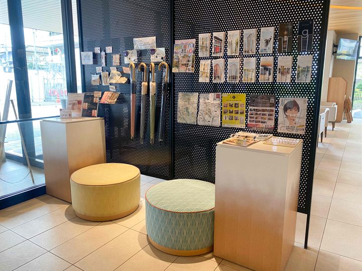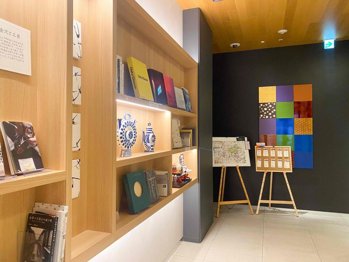 金沢土産や本のコーナーもあり、コンパクトながら充実したサービスのスペースです。