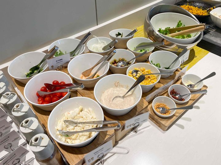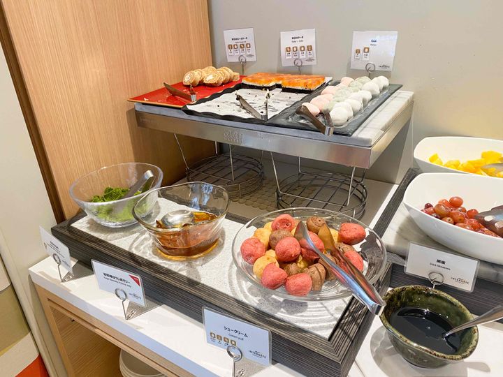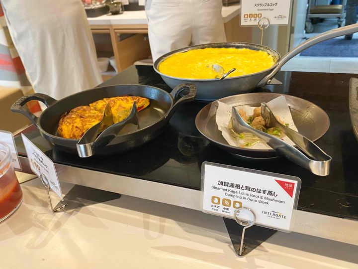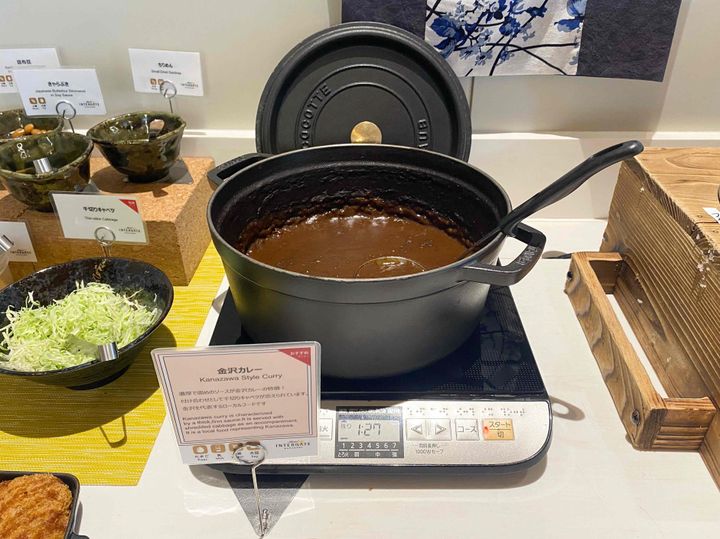 和洋どちらも楽しめる朝食では、「金沢カレー」「のどぐろのカルパッチョ」「加賀根菜と茸のはす蒸し」など地元のお料理も提供されていました。