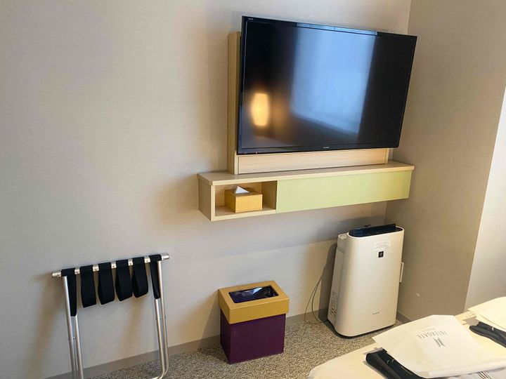 大きな画面のテレビや加湿空気清浄機もあり快適に過ごせるので、早めにチェックインして客室でゆっくりしたくなります。
