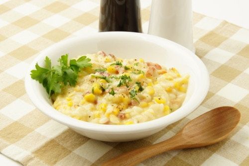 白菜を入れたコーンスープのもとでお手軽リゾット、ほっこりできそうですね。