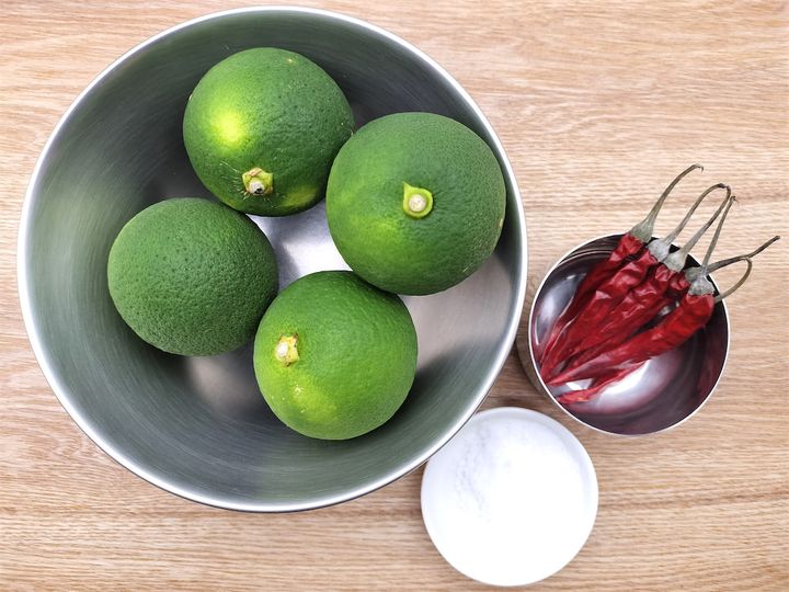 ※今回実際に使った量:かぼすの皮39g、唐辛子2.5g、かぼす果汁70ml、塩16.7g