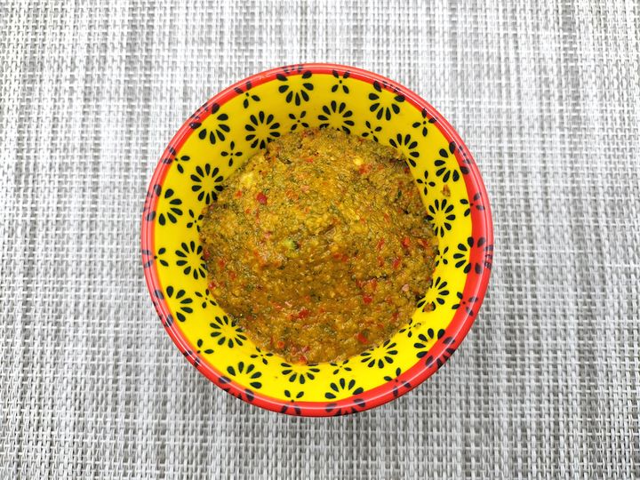 出来立てをそのままちょっと舐めてみると、爽やかなかぼすの酸味が口の中に広がりました。赤唐辛子が少なかったかな?と思った次の瞬間、遅れて辛みがじわっとやってきました。作り立てなので柑橘の香りもちゃんとしますが、おそらく時間経過と共に少し薄れてしまいそうな気がします。ちなみに今回使ったかぼすは旬の走りで小さかったので、4個絞っても果汁は70mlにしかなりませんでした。だったら全部果汁を使ってもよさそうなものですが、かぼすが小さい分皮の量も少ないので少しずつ果汁を加えながら混ぜていったところ、予想通り果汁が余りました。かぼすはもちろん個体差がありますので、作るときは一度に果汁を入れずに調整しながらの方がよいと思います。