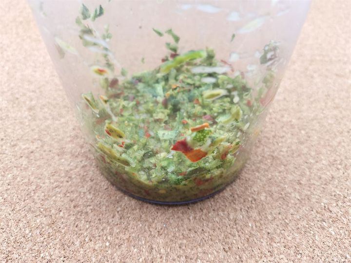 4. ミキサーにかぼすの皮、唐辛子、かぼす果汁、塩を入れ、ペースト状になるまで回します。
