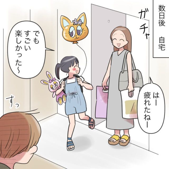 娘とふたり、しっかり遊んで数日後に帰宅したナオミさんたちは、楽しかった旅のおかげでご機嫌でした。