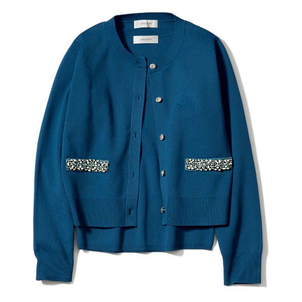 高貴なブルーニット×リッチなビジューでロイヤルレディを気取って。