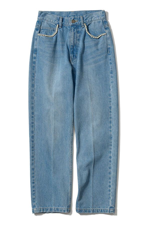 ポケットに連ねたパールのきらめきでデニムに女らしさを