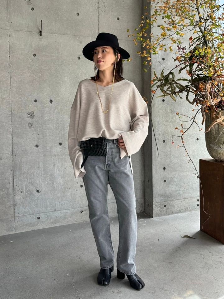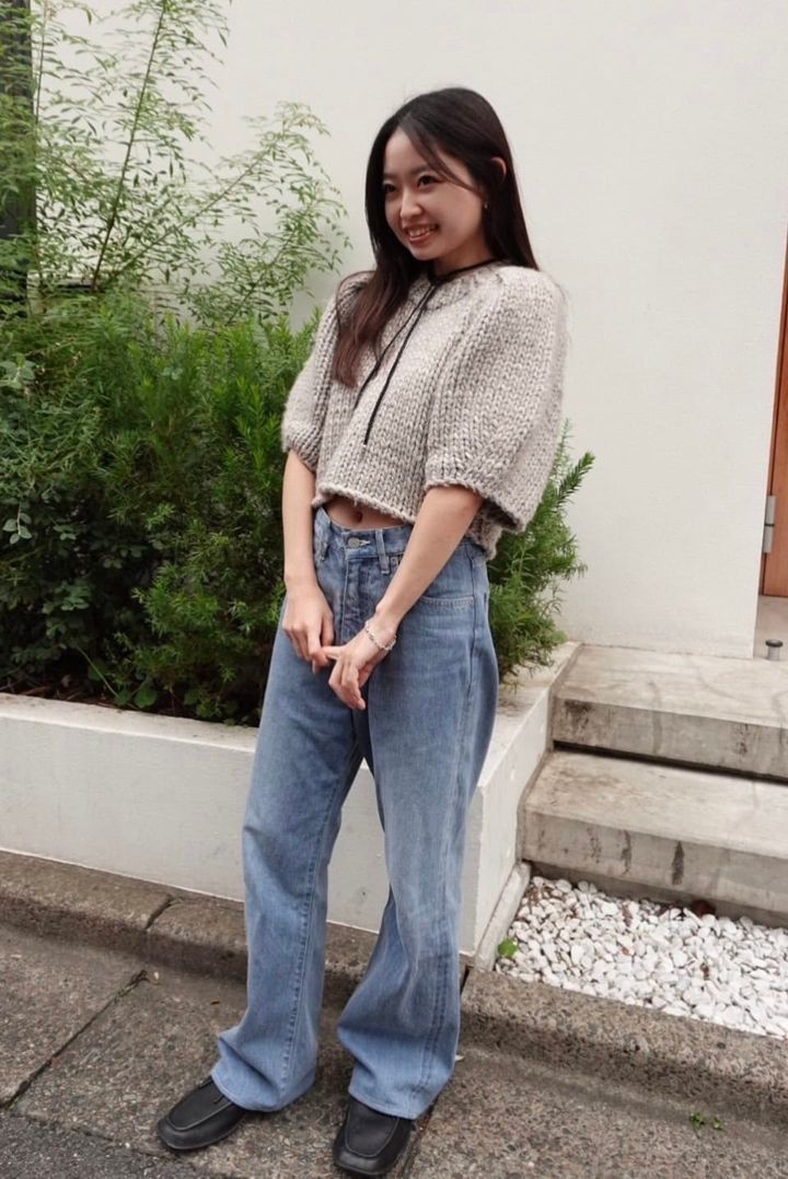 「袖にボリュームがある少し甘めなニットに、ルーズなデニムを合わせてヌケ感が出るようにしました。足元はレザーのモカシンシューズをチョイスして、ラフになりすぎず大人っぽさも出るように意識しています」