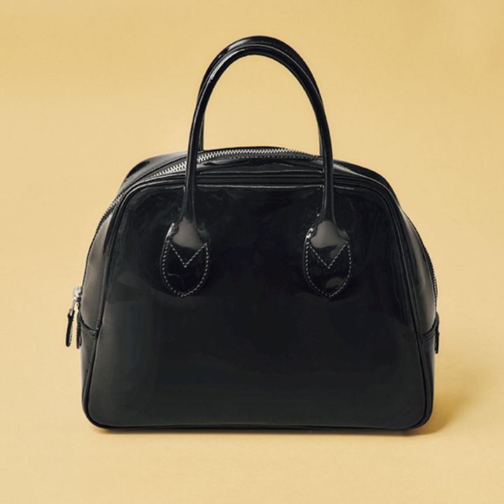 毎月ごく少数入荷のため争奪戦で、チェックし続け早2年、一番欲しかったサイズと対面できました。黒でもパテントなら重い印象にならず気に入っています。本やペットボトルも入るから大活躍の予定。