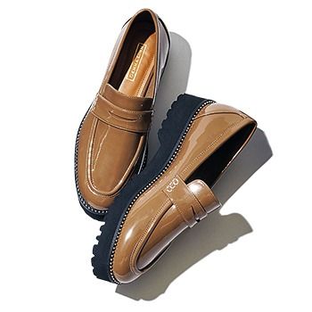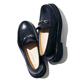 ラフな装いにもなじむ、かたさのほぐれたデザインの使えるローファーをラインアップ。それだけで重厚感があるから、ショートボトムやタイツ、スキニーなど、レッグラインがあらわになる薄軽アイテムと好相性。足首がほっそり見える効果に加えて、スニーカー感覚で疲れにくく歩きやすい点も大きなメリット。