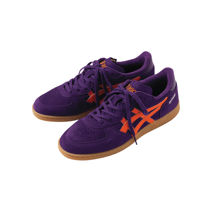 デニム×白ブラウスは人気コーデの常連。デニムONデニムでシャレ度を高めて、足元にはパープルのスニーカーでアクセント。アシックスは人気沸騰中のブランド♡