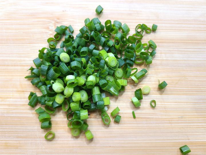 1. 青ねぎを小口切りにします。豆腐は水を切っておきます。