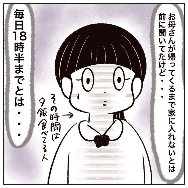 「お母さんが帰ってくるまで家に入れないとは前に聞いてたけど・・・毎日18時半までとは・・・」と、その時間にはいつも夕飯を食べる生活をしているまるさんは驚きを隠せませんでした。