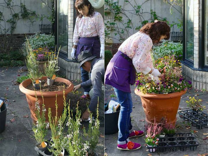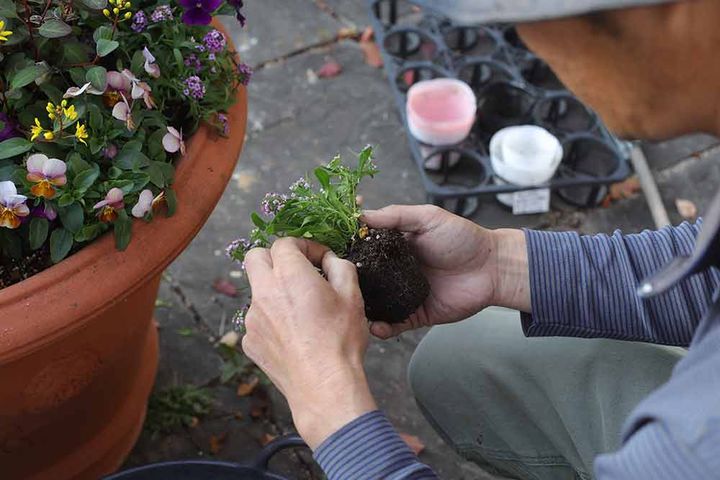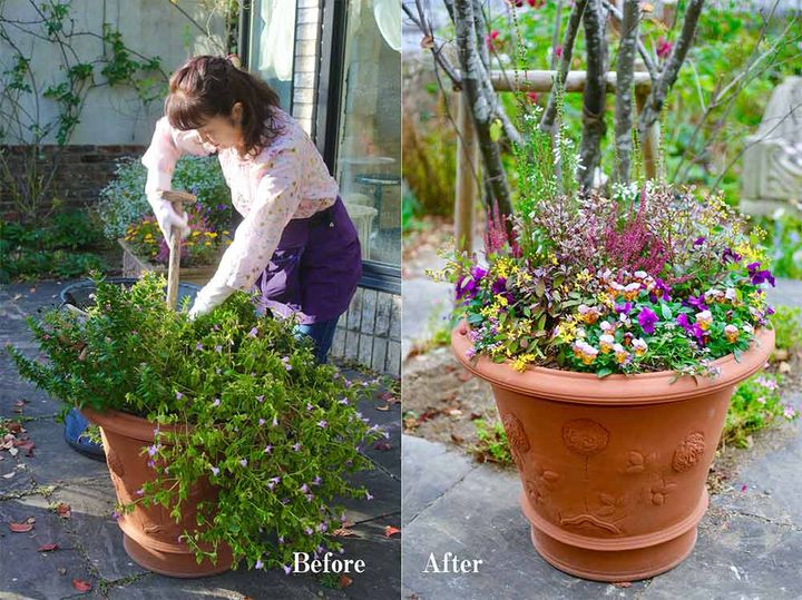 大鉢の寄せ植えの植え替え方