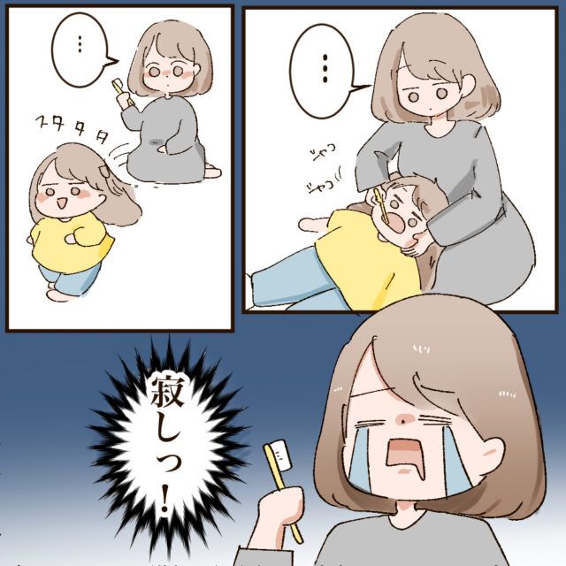 長女みーちゃん、長男はーくん、1歳7ヶ月差の年子姉弟のママである和栗ぐりさんから、仕上げ磨き中に寂しさを感じたお話です。