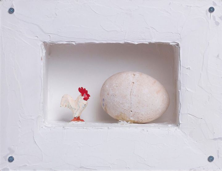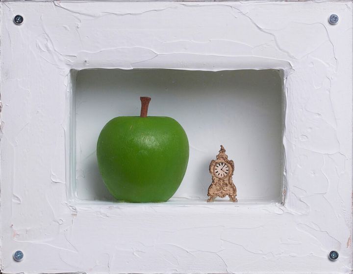 さらに、コラージュアーティストの妻・つぐみさんの個展も隣の会場『Creative Lounge MOV -SHOWCASE aiiima 2』にて同時開催。フランスのロワーヌ河の畔りの森の中で出合ったボタンとタイル、パリの蚤の市で見つけたミニチュアのオブジェなどをちりばめたコラージュ作品が並びます。赤の画家による鮮やかな絵画と、フランスのエッセンスが添えられたコラージュ作品を、この機会に見に行ってみては。