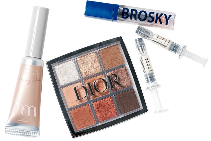 BROSKYのリップグロスとアイクリームは、シワやたるみに効果てきめん。ディオールのアイパレット001は赤みのあるブラウン系で使い勝手がよく、普段のメークからお出かけまでOK。アイエムのアイブロウマスカラは他にない色味が豊富でお気に入りです。