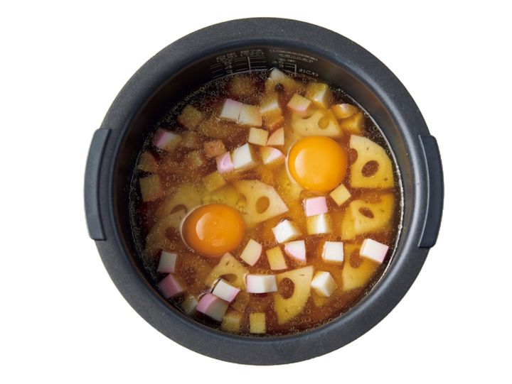 白身が流れて広がり、米にからむと炊いたときにその部分だけしんが残る原因に。内がまを炊飯器にセットしてから卵を静かに落とし入れ、すぐに炊くのがおすすめです。