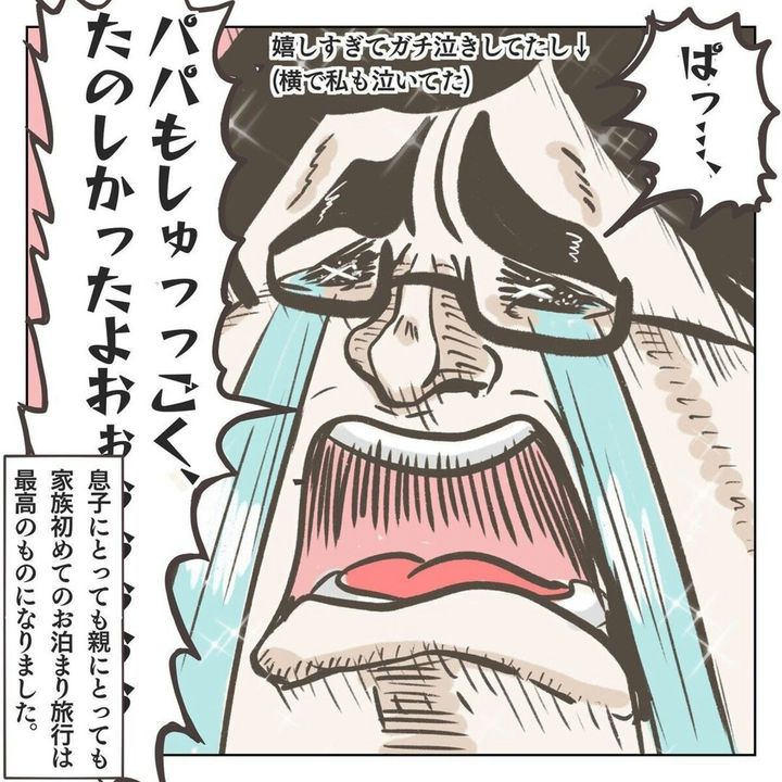 息子ははじめてのお泊まり旅行がよほど楽しかったのでしょう。こんなに喜んでもらえると、連れて行ったかいがありますね。家族にとって幸せな思い出が増えたようでなによりです。
