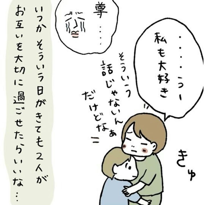 思春期や反抗期は誰でも通る道。わが子もいつか、そういう時期になると思うと成長をうれしく思う反面、寂しさも募りますよね。先のことは分かりませんが、できればいつまでも家族を思う気持ちは変わらないでいてほしいものです。うにわさび(@unifamily_uni)さんの子どもたちの微笑ましいやりとりをご紹介します。