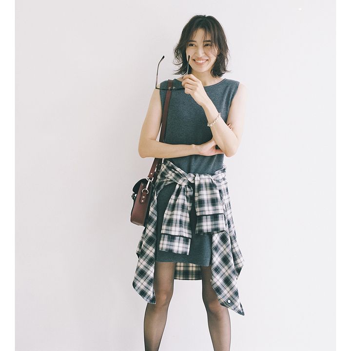 そのままで終わらせず+αが必要な大人のミニコーデにも、チェックシャツの“おじ味”がいい仕事してくれる。お尻やお腹をカバーしながら女っぽさをオフ。あくまでカジュアルムードに仕上げて、気恥ずかしさも解消。