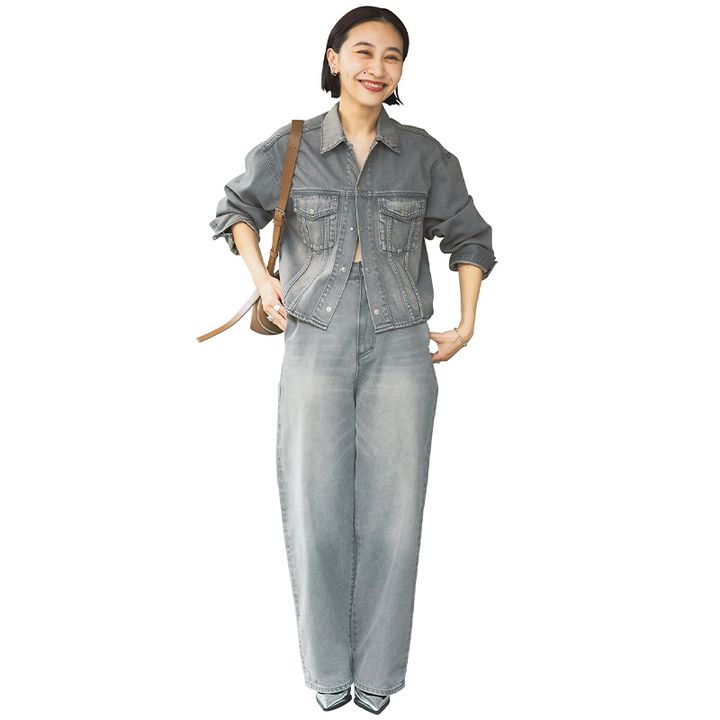 朝晩の寒暖差やオフィスの空調対策などに最適なライトオンスのデニムシャツは、体に馴染む柔らかさで汎用性の高い一枚。ほどよい肌見せでバランス調整しつつ、短か丈なので低身長でもスタイルアップして見えるのもお気に入り!