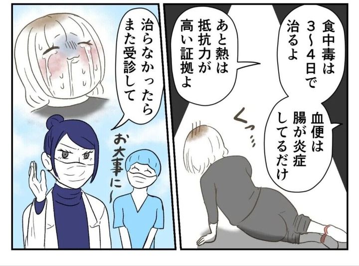 下痢止めを飲んでも効果はなく、どんどん症状がひどくなった尾持トモさんは救急搬送されます。そして診断結果は食中毒ということでした。