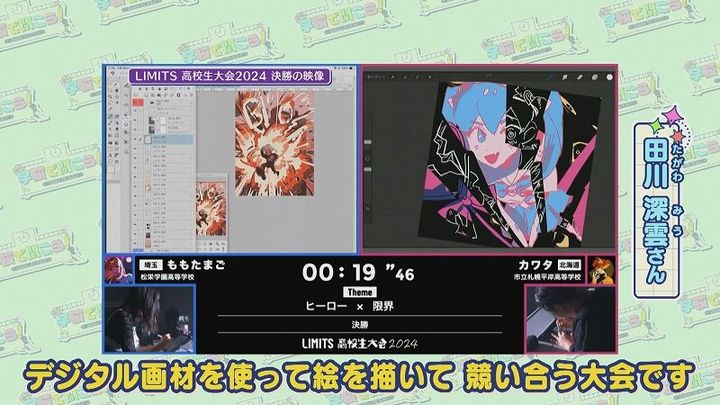 田川さん:「LIMITSは、20分間という限られた時間の中で、デジタル画材を使って絵を描いて、競い合う大会です」