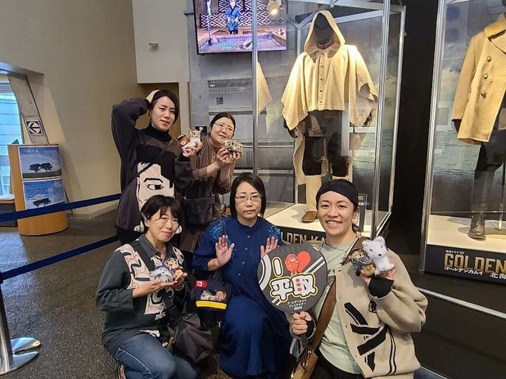 『ゴールデンカムイ』関連のグッズを手に記念ショット
