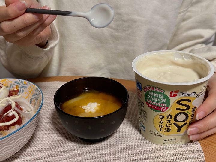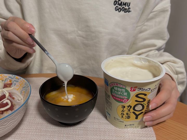 私は今回味噌汁に入れました!かぼちゃとネギの味噌汁だったのですが、とろみが出てまろやかになりました。めちゃ美味しい!ヨーグルトの酸味もないのでご飯に合う気がします!