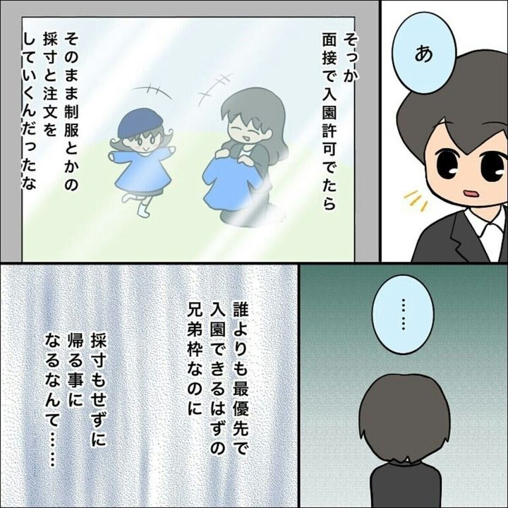 面接を続けてもらえなかったこと、入園許可がもらえず制服の採寸もプレゼントの折り紙ももらうことができなかったこと…。