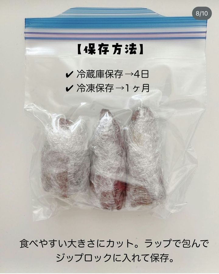 保存期間は目安です。ラップでくるんで、保存袋に入れて冷凍保存しています。