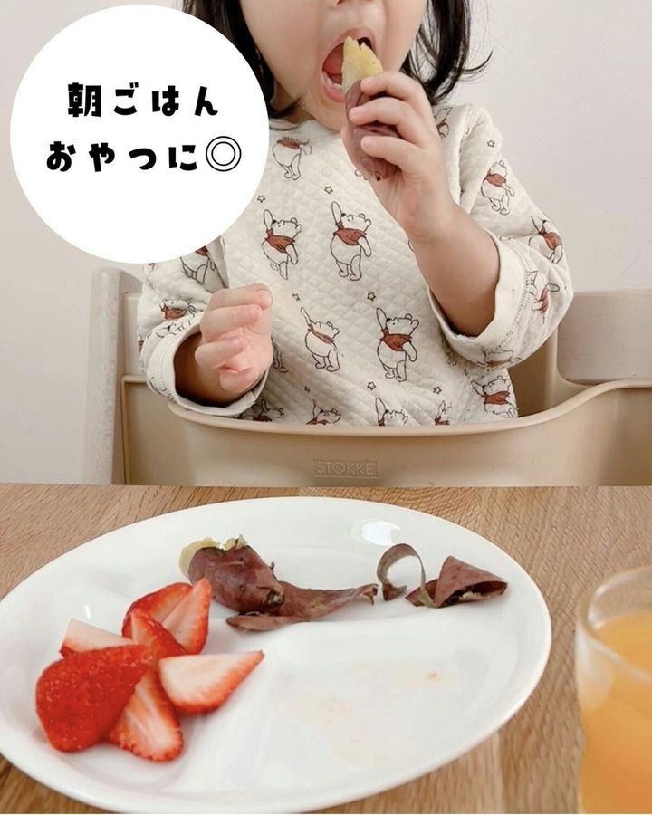 こちらはわが家のある日の朝ごはん。焼いて冷凍ストックしておいたやきいもを温め、いちごと一緒にいただきました。忙しい日の朝食やおやつにもぴったりですよ。