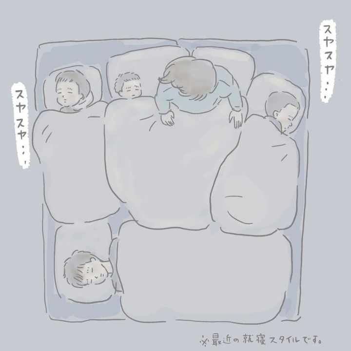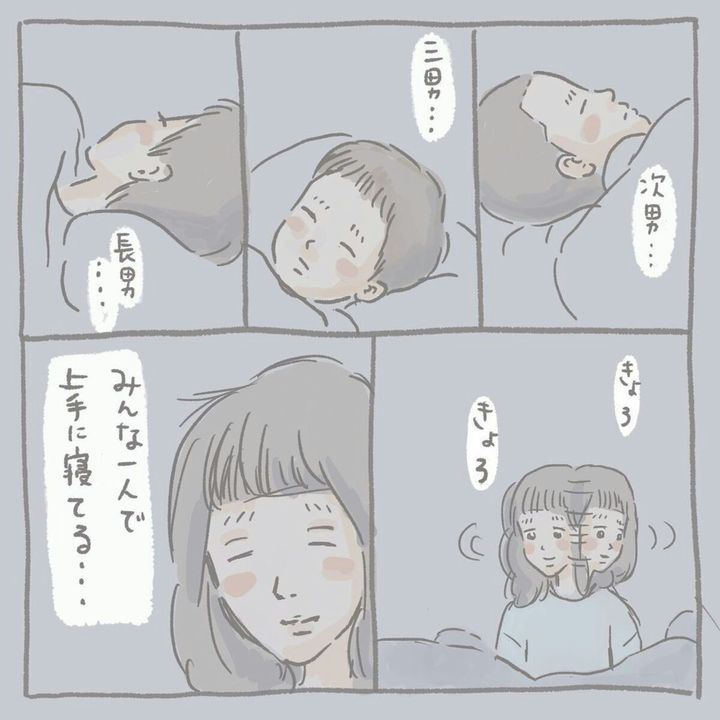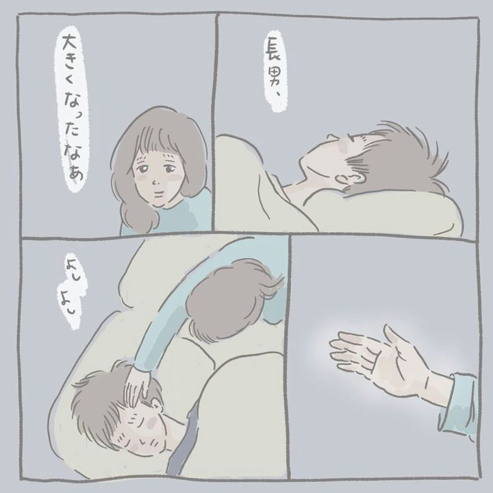 4人兄弟の母である、いであい(@ideaizo)さん。末っ子である四男の寝かしつけを終え、ふとほかの兄弟が寝ている様子を見渡します。「赤ちゃんのころはみんな寝かしつけられて寝ていたのに、いまは一人で上手に寝ているなあ」そんなことを考えながら、長男をよしよしするとまだ起きていたようで…。いであいさんの漫画「いつかは終わってしまう『寝かしつけ』をどうぞごらんください。