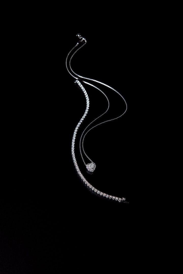 上から:ペンダント「グラフ アイコン」[WG×DIA]¥1,360,000、ブレスレット「クラシック グラフ」[WG×DIA]¥4,811,000(共にグラフ/グラフダイヤモンズジャパン)