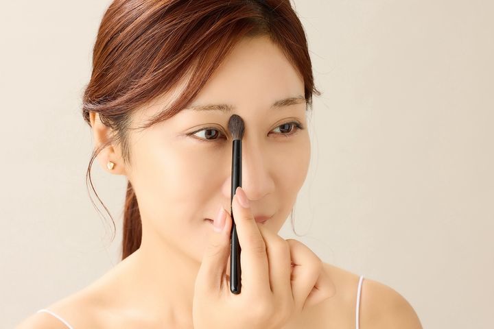 さらに、眉頭から鼻筋にかけてのくぼみと、鼻先と鼻下に影を作ると鼻筋をつまみ出したように立体感が出ます。
