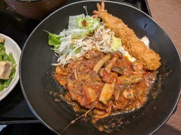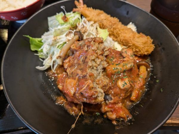 トマト煮込みハンバーグ&エビフライ 800円