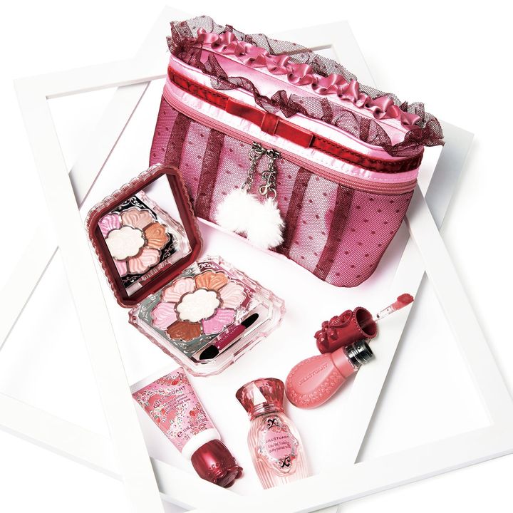 最後の一口までときめきが止まらない、贅沢なベリーパフェをテーマにしたコレクション。何通りもの組合わせが楽しめる7色アイシャドウ、ベビーピンクの下地、高発色リップ&チーク、オードトワレがセットに。ギルティパフェタイム コレクション¥8,800(ジルスチュアート ビューティ)