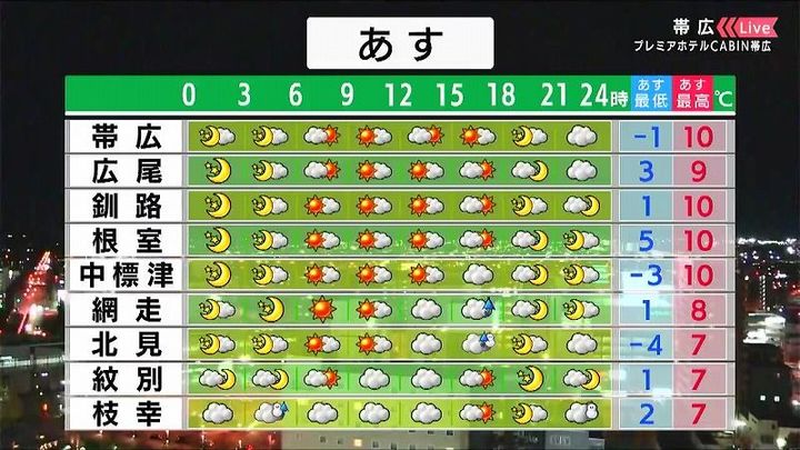 背景は5日午後5時10分ごろの帯広情報カメラ