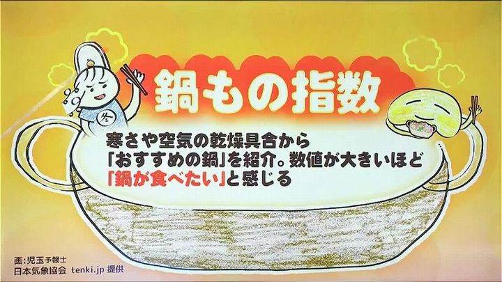 日本気象協会が発表している鍋もの指数。数値が大きいほど鍋が食べたくなる指数です。
