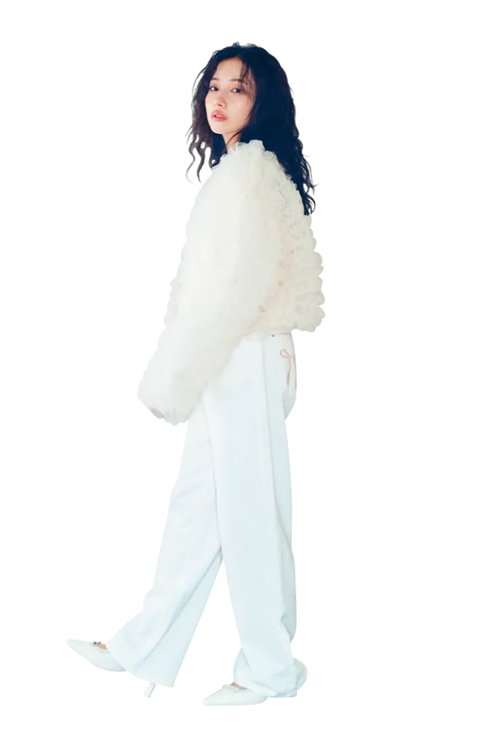 ホワイトボリュームチュールニット 24,200円/HONEY MI HONEY ホワイトデニムパンツ 8,800円/MORE self LOVE パンプス 8,910円/RANDA