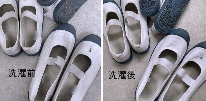 ウォッシュボーイを使った上履き洗いのビフォー・アフター