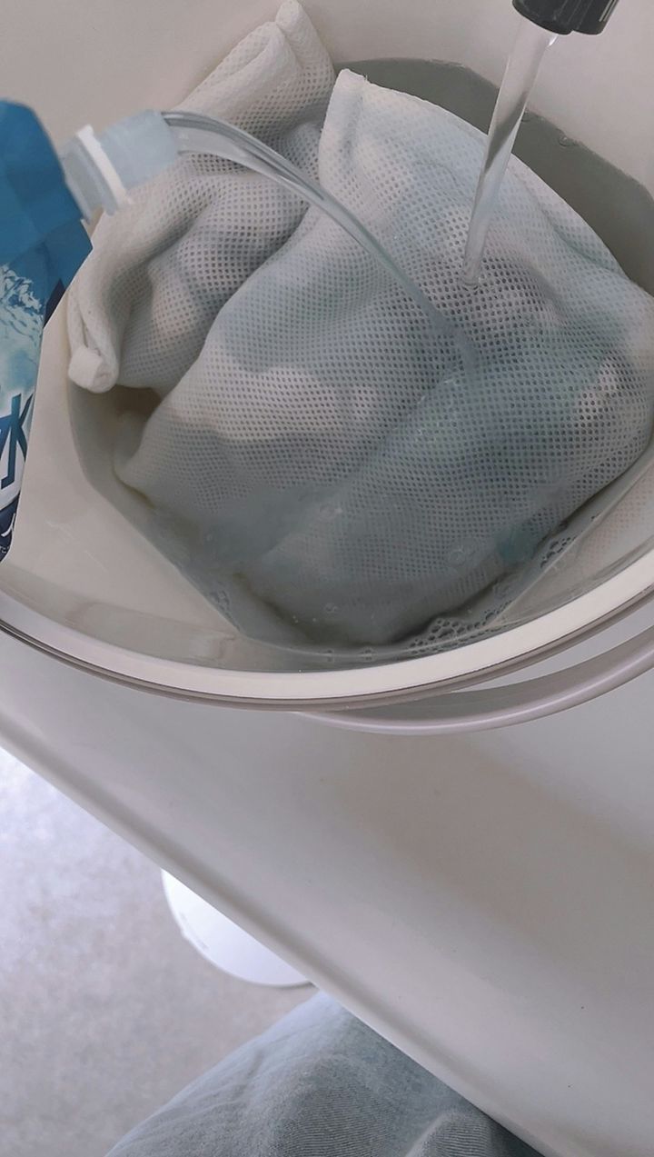 最初は100均で売っている靴洗い用の洗濯ネットに入れていましたが、個人的には洗濯ネットに入れずに直で回してもいいかなと思っています。