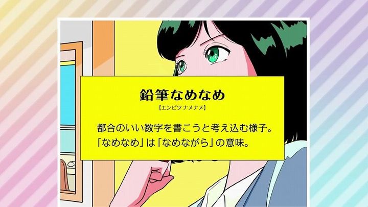 「鉛筆なめなめ」は、都合のいい数字を書こうと考え込む様子。