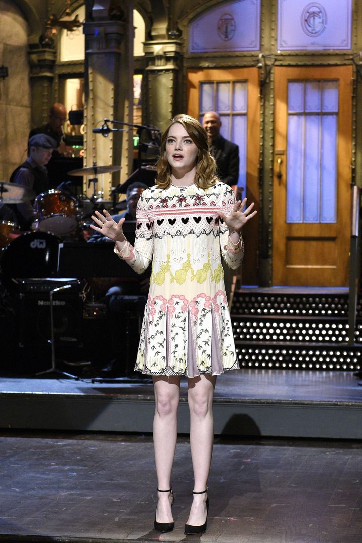 当時、デイヴが脚本や演出を手掛けていた人気番組『サタデー・ナイト・ライブ』に、ホストとしてエマが出演しました(写真)。