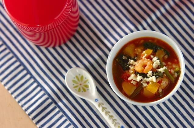 ■スープジャーでお弁当【シーフードトマトリゾット】