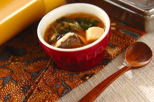 タラのうま味が染み渡るおいしさのチゲ鍋風スープは、春雨入りで食べ応えがあります。塩むすびを用意して、残った汁に加えて雑炊風にしても美味しいですよ。